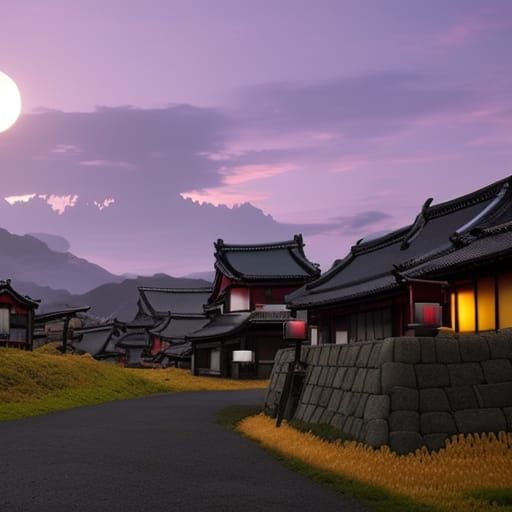 A nice spooky Japanese village scene, even if the ghosts I asked for are not present, then again maybe that works?