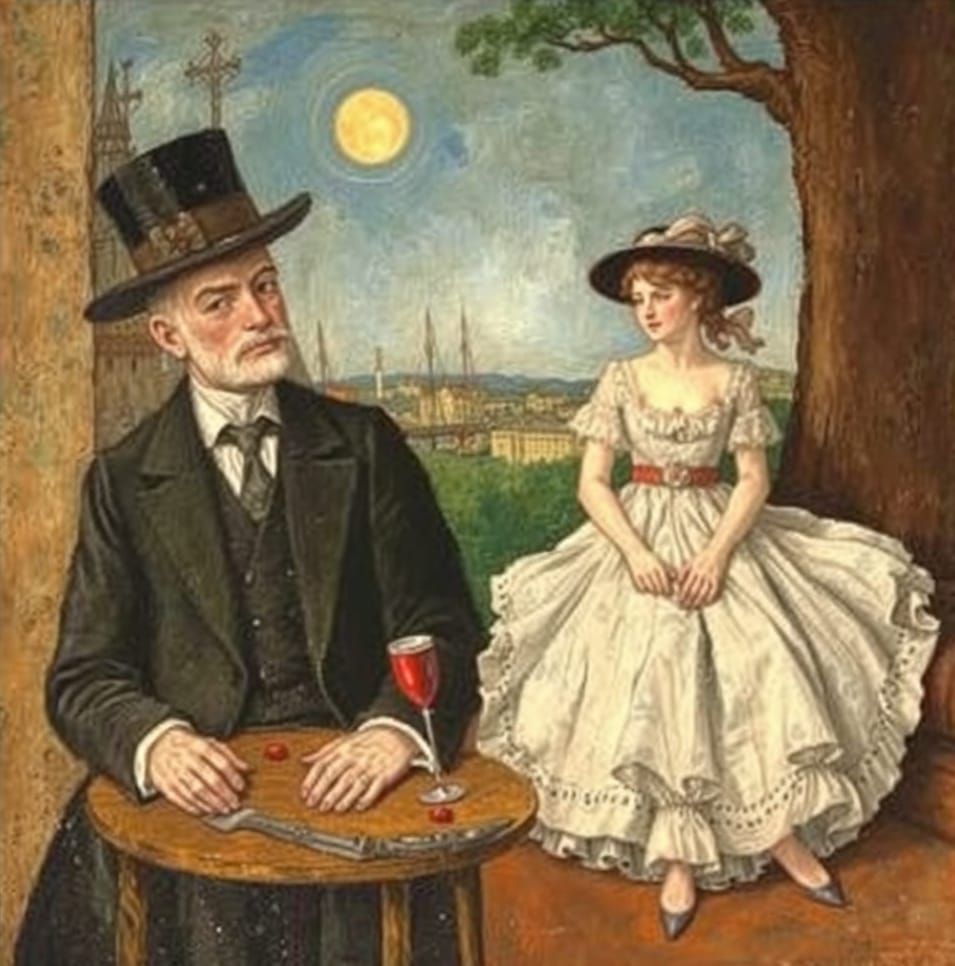 Generate your own unique allegorical oil paintings in the style of Rops and Utrillo. Free and easy AI art creation.