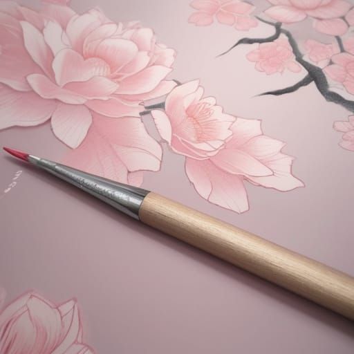 A detailed charcoal drawing of a woman wearing a pink kimono. The artwork showcases soft brushstrokes, delicate fabric folds, and warm lighting, capturing Japanese aesthetics with vibrant pink hues.