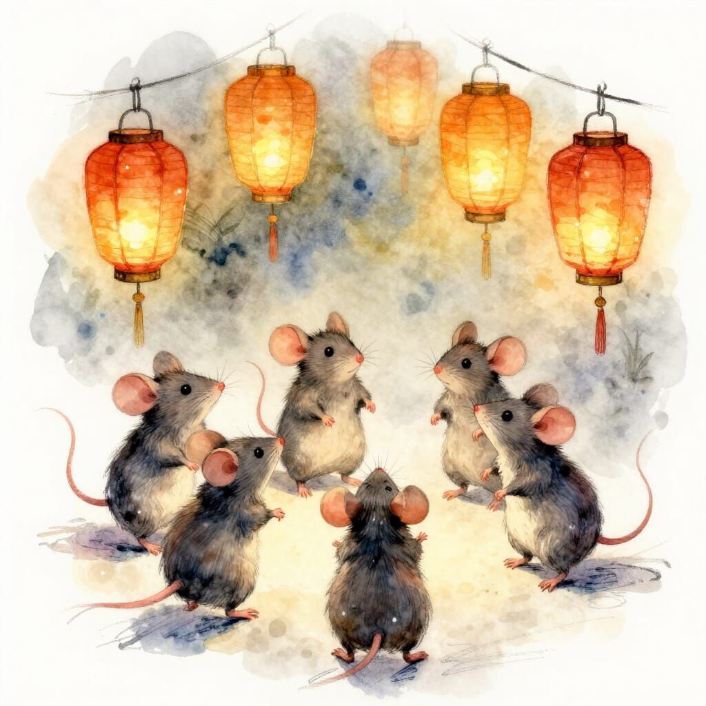 Easily generate your own anthropomorphic mice images with a warm watercolor glow using our free AI tool.