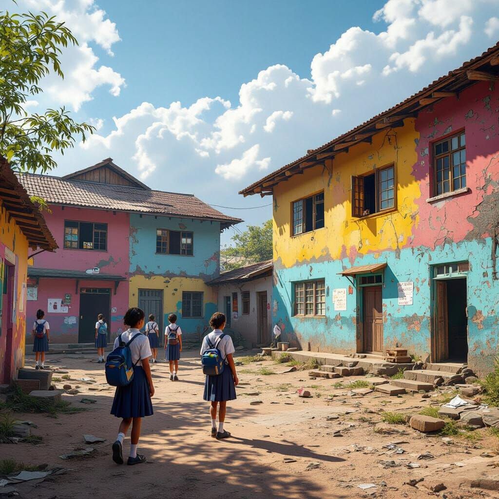 Generate unique images comparing school types. Easily create your own contrasting school scenes for free!
