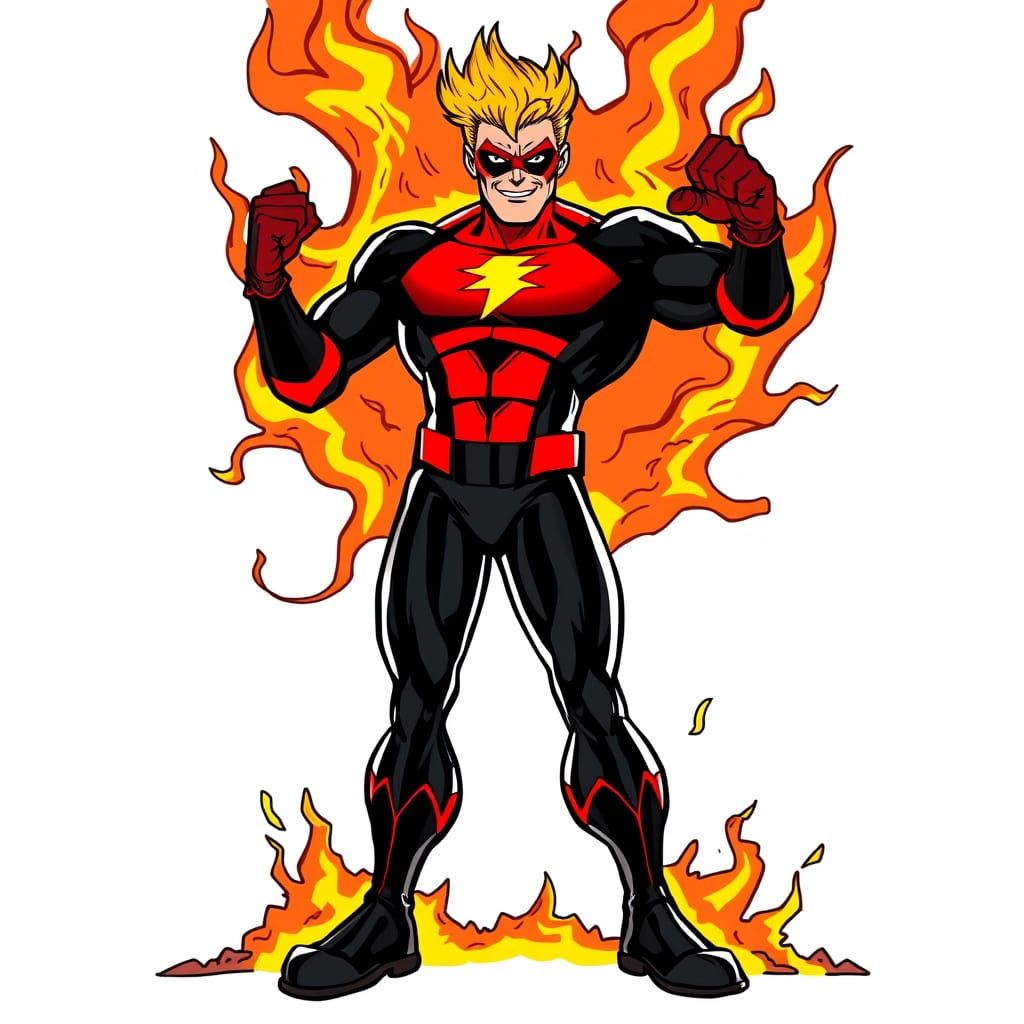Create your own flaming superhero images with our free AI image generator. Easy and fun!