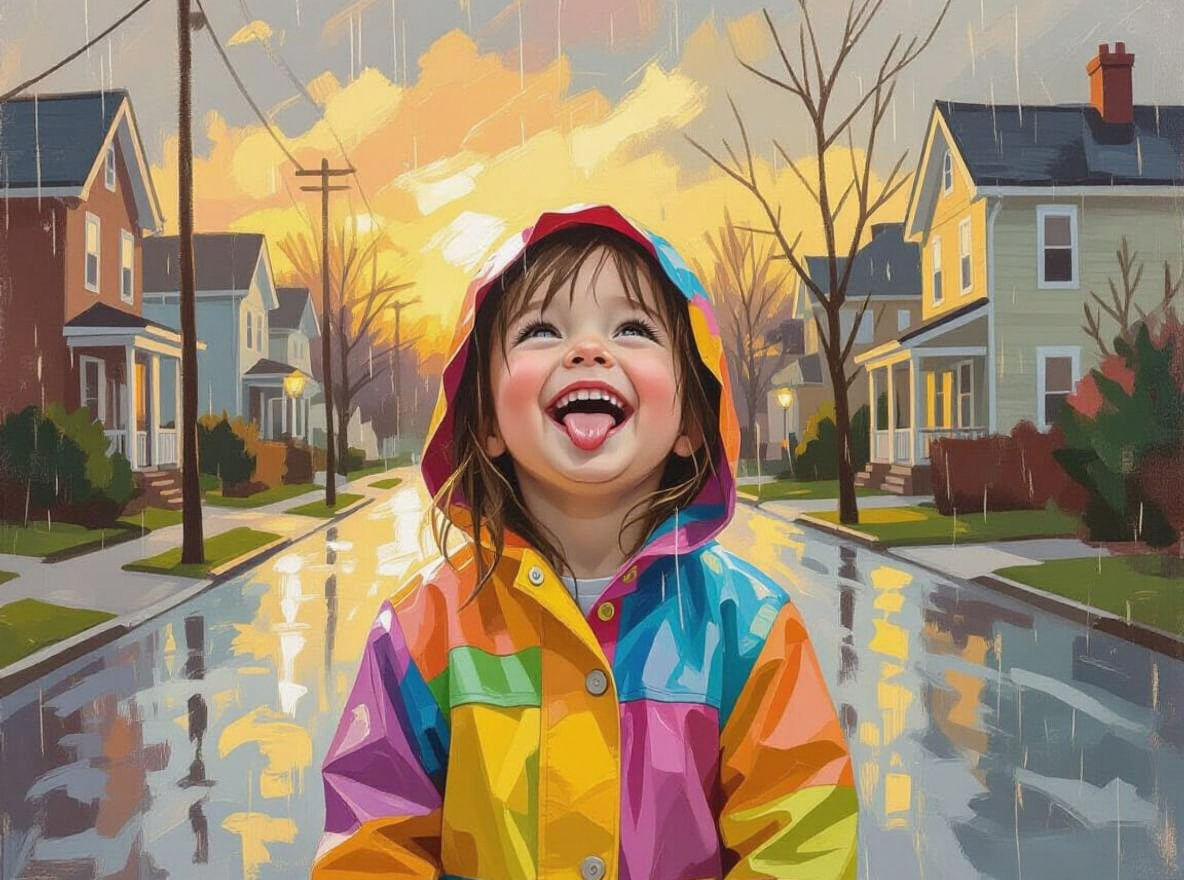 The Beauty in Ordinary Moments. A child laughing in the rain, trying to catch the drops on her tongue.