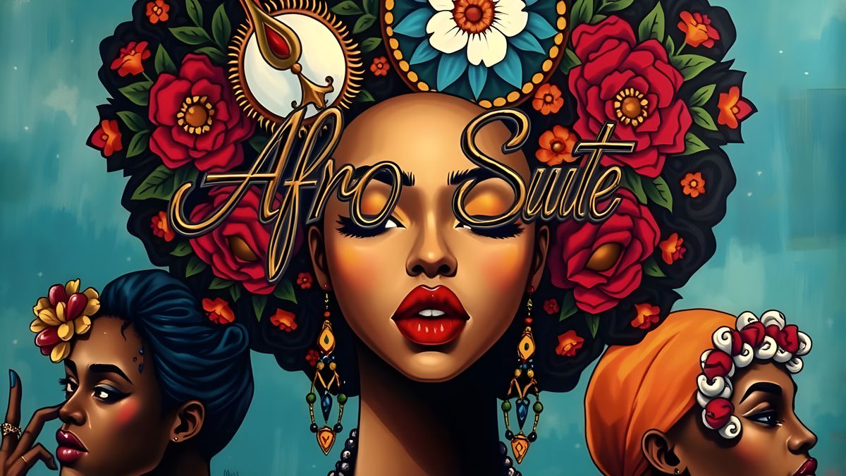 This image shows the words 'AFRO SUITE' in a stylized font. The letters are bold and stand out against the background. The overall design is simple and eye-catching.