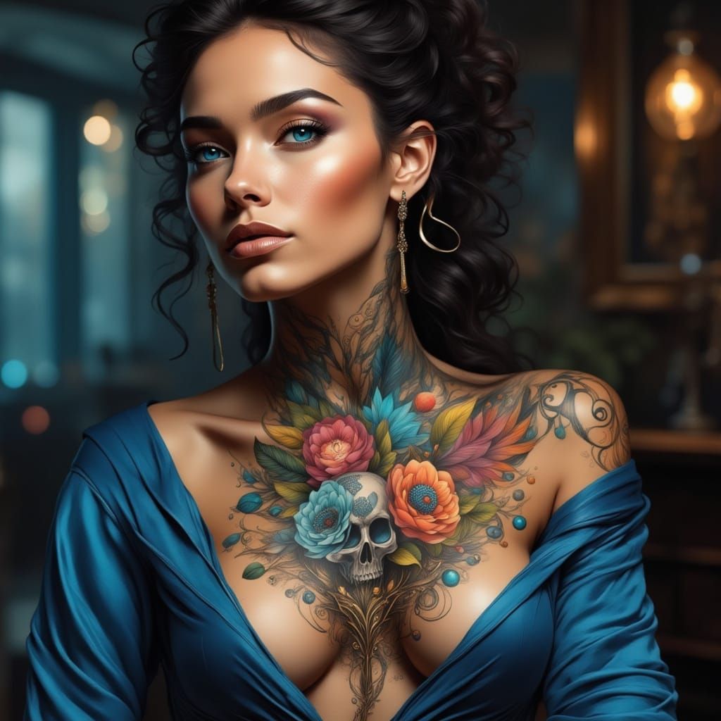 Make your own tattooed portrait with our free AI image generator. It's easy and fun!