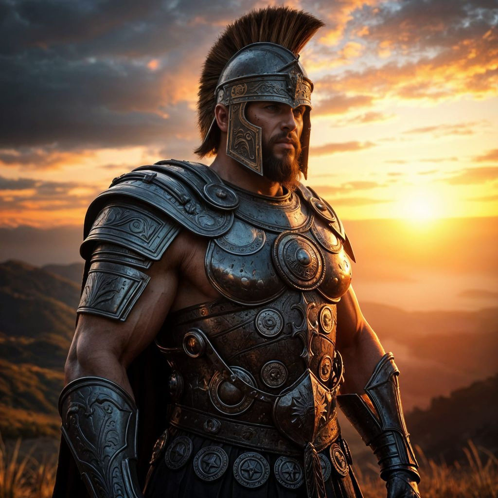 "High fantasy epic male roman legionnaire, epic steel roman armor, muscular, scenic sunrise background, high detail, high quality, correct anatomy, Cinematic film still, shot on v-raptor XL, film grain, vignette, color graded, post-processed, cinematic lighting, 35mm film, live-action, best quality, atmospheric, a masterpiece, epic, stunning, dramatic"