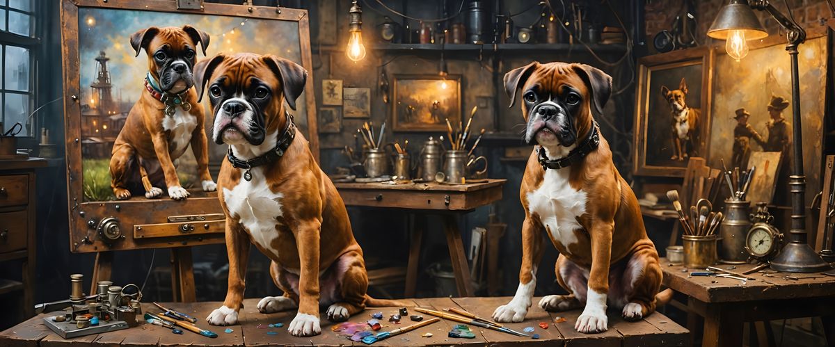 Create your own adorable boxer dog art! Our AI image generator makes it free and easy.