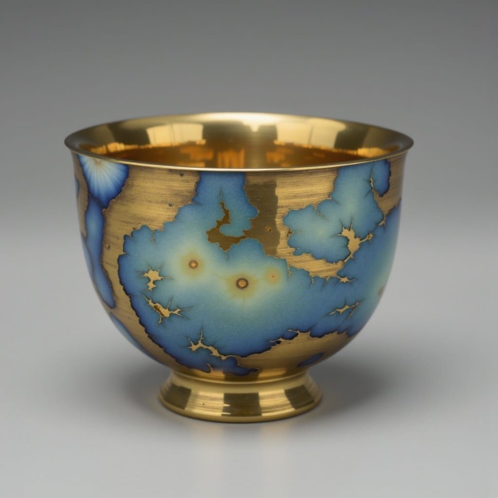 This image showcases a detailed matte painting of an exquisite 24K gold cup, intricately adorned with shimmering platinum streaks, creating a luxurious and sophisticated visual.