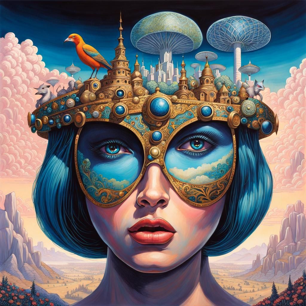 A surreal image of Melle Oldeboerrigter, intricately detailed and hyperdetailed, featuring humans and animals in a colorful, beautiful fantasycore style, reminiscent of a mysterious painting.