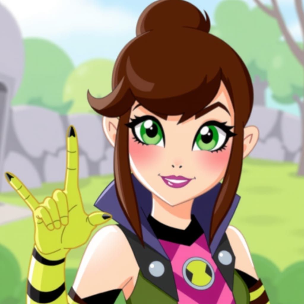 This image shows Gwen Tennyson from Ben 10. The AI rendering creates a charming and beautiful depiction of the cartoon character.