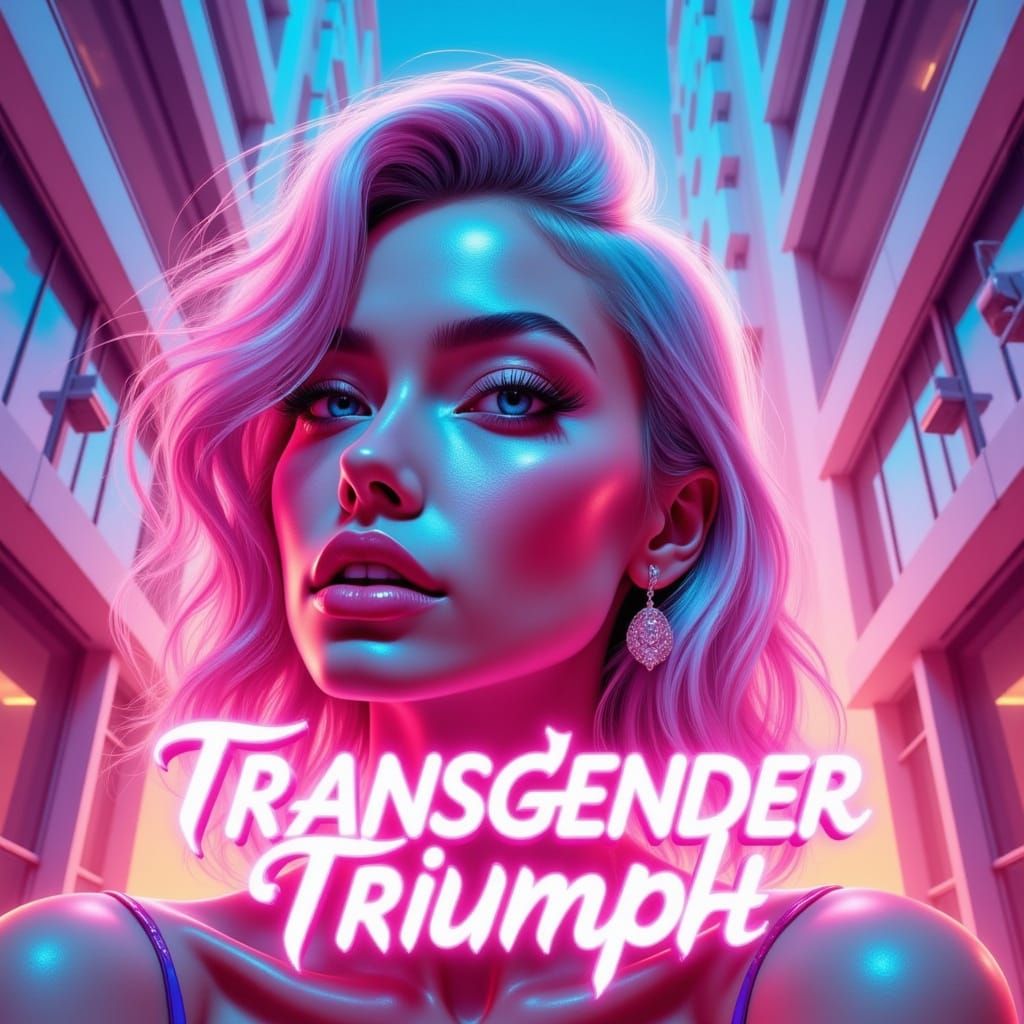 This image showcases a vibrant, androgynous character in a dynamic pose, set against a stunning pastel sky with nebulas and space ships. The character is adorned with intricate jewelry and dramatic makeup, exuding a bold and stylish presence.