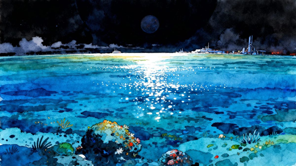 dark comic style, watercolor, hyperdetailed, sublime, detailed, majestic, long distance, ultra wide-angle, storytelling (detailed illustration, depict wet brush technique, solarpunk inspired Nausicaa artwork, limited, restrained, crisp, clear, high-contrast lighting, deep detailed fun background :: cross ...