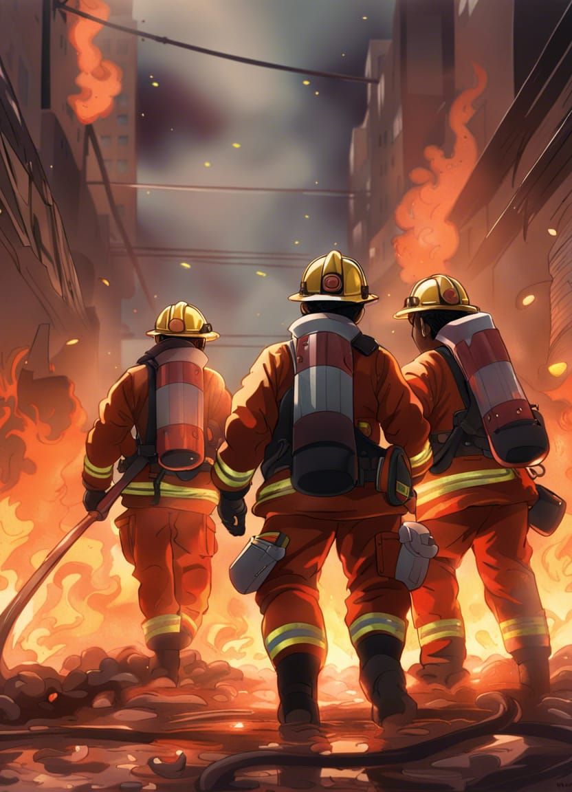 Make your own dramatic anime-style images of firefighters and other heroic scenes with our free AI image generator.