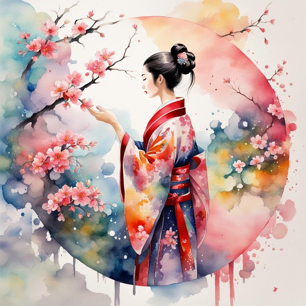 Create your own stunning watercolor portraits of Japanese women with sakura. It's free and easy!