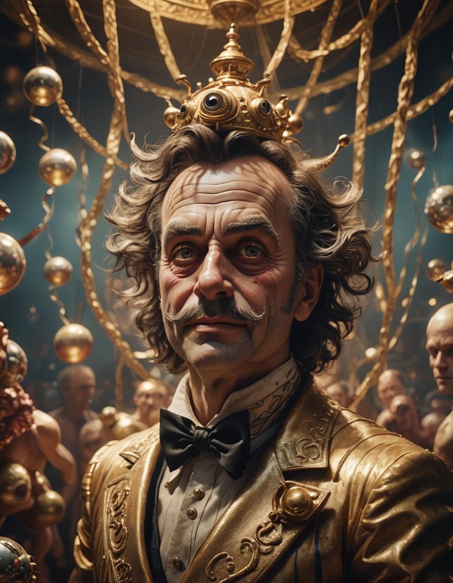 A surreal close-up of Zirkus Nemo in a dreamlike setting. High contrast cinematic lighting and ornate composition create a hyper-realistic image with soft, golden light and dramatic shadows. Rendered with oil on canvas textures.