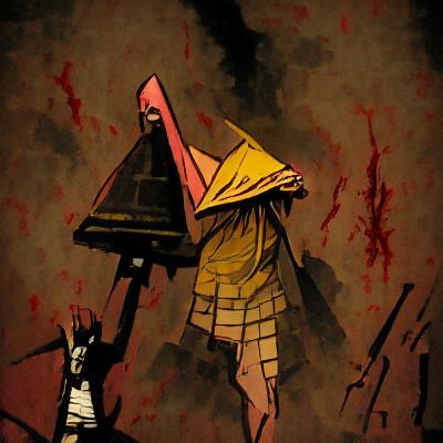 This image shows Pyramid Head rendered in a graphic novel style. The composition and shading evoke a dark, comic book aesthetic.