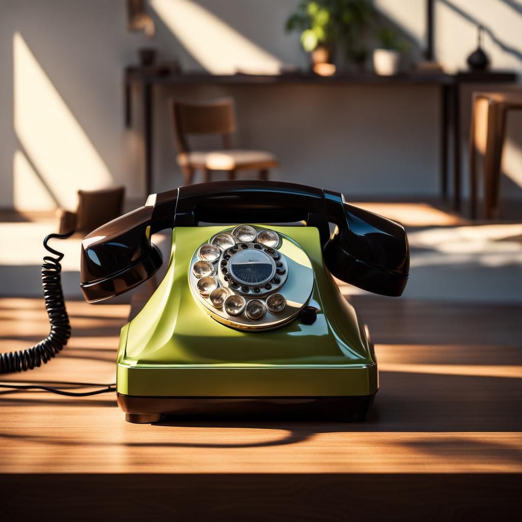 This image shows a vintage telephone bathed in sunlight in a modern home. The composition highlights the contrast between classic design and contemporary interior decor.