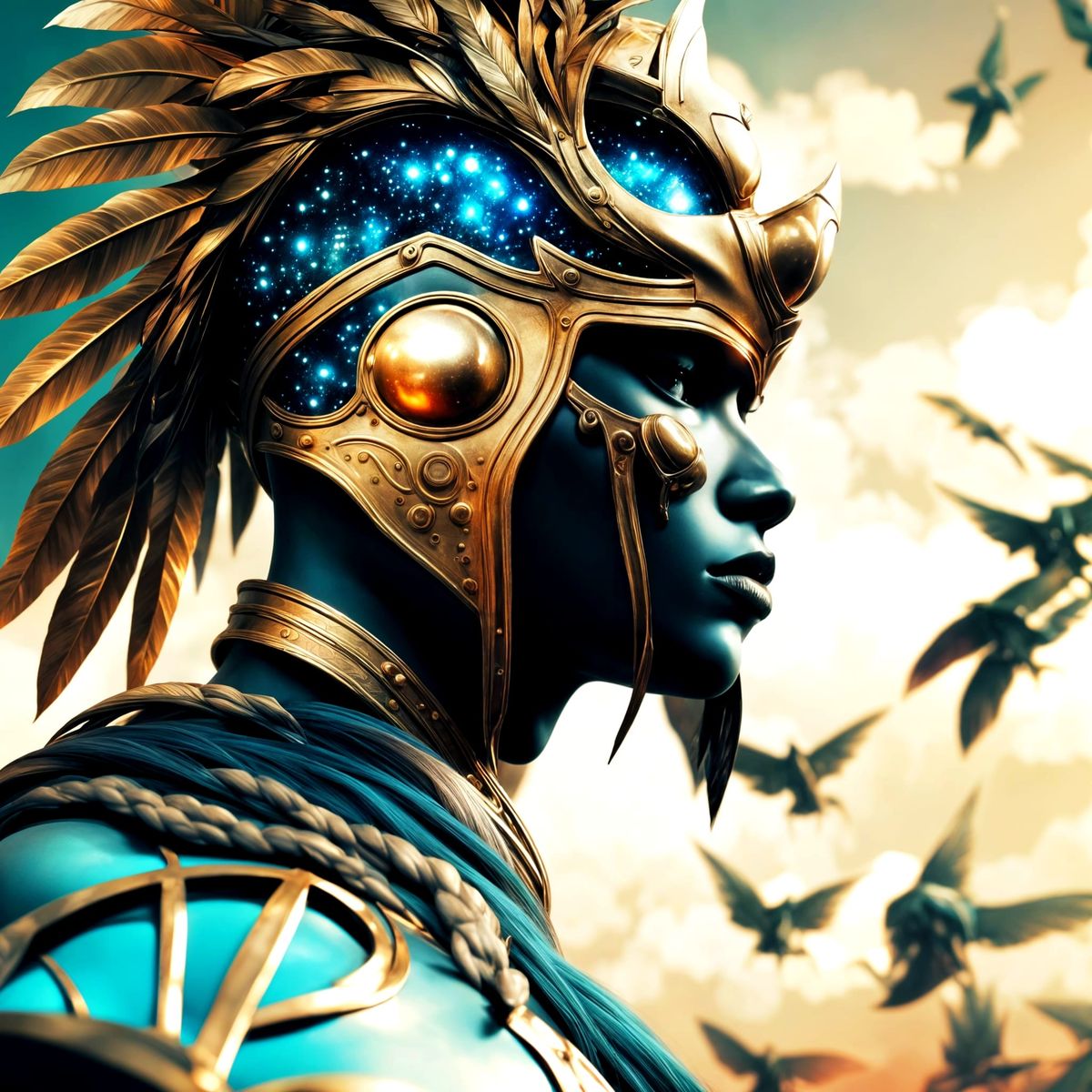 Easily generate stunning portraits with our free AI image generator, featuring realistic metallic and neon effects.