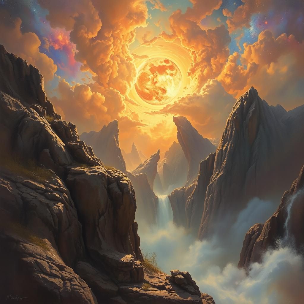A vibrant oil painting of goddesses descending from spaceships. The artwork features detailed brushwork and a rich color palette, reminiscent of classical fantasy art.