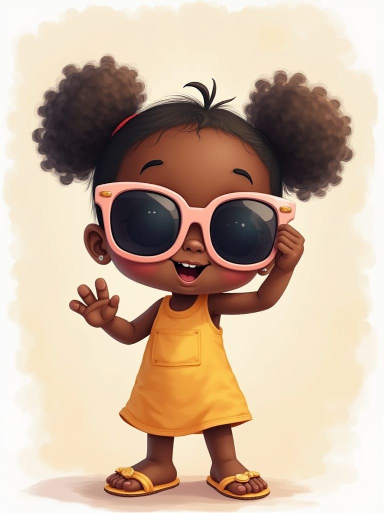 This image shows a cute African American child's illustration wearing sunglasses and playing peekaboo. The artwork is rendered in a delicate pastel style.