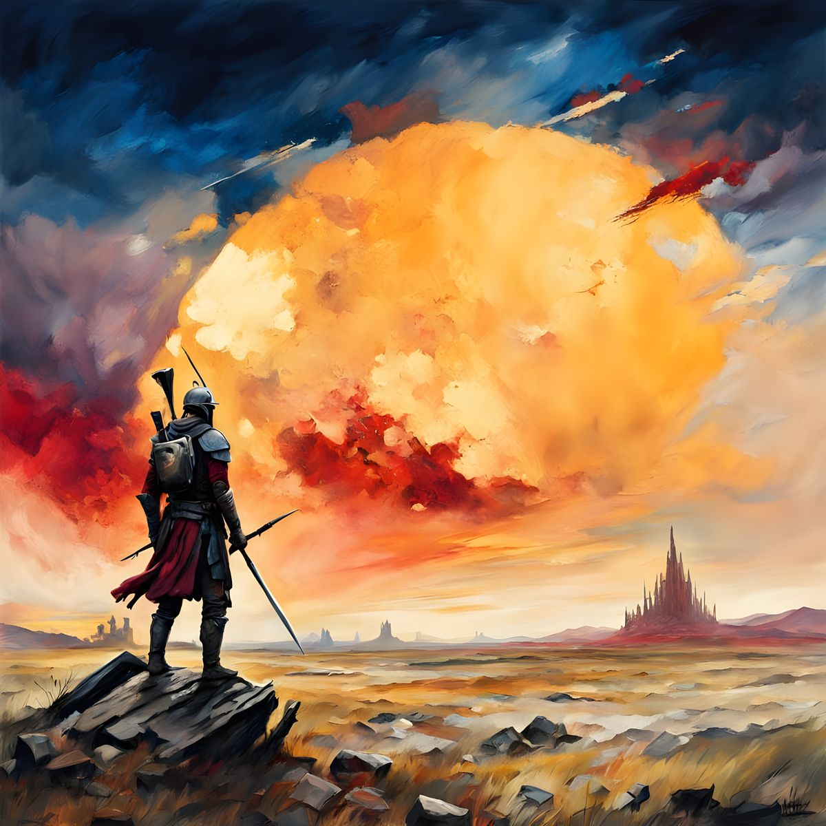 This image showcases an epic impressionist masterpiece with thick, textured gouache brush strokes on canvas, rendered in high resolution with a matte finish.