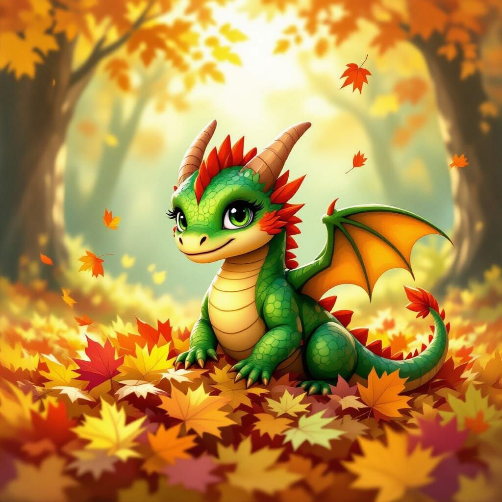 Generate unique baby dragon pictures playing in autumn leaves and more with our easy-to-use AI tool. Try it free!