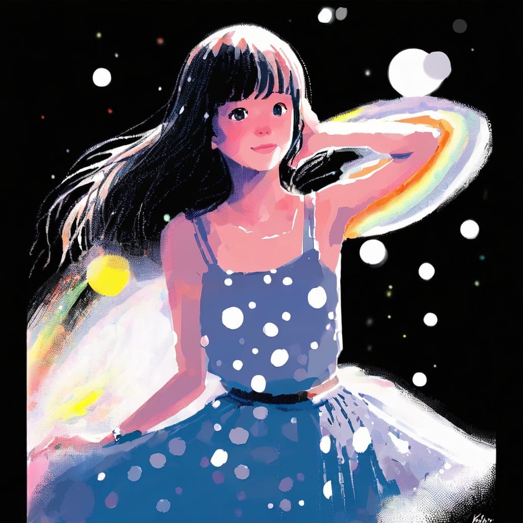 This charming portrait showcases a unique blend of Impressionist and anime-inspired techniques, featuring a young subject with striking jelly-like eyes and a delicate, dreamy quality.
