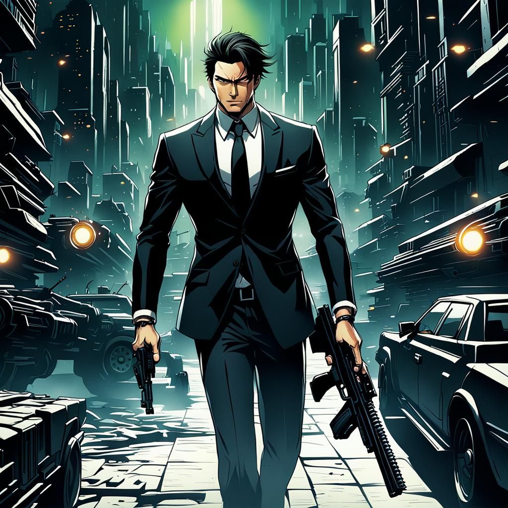 possessive , alpha, super handsome, boss, obsessive, dark backcomb hair, black suit, gun