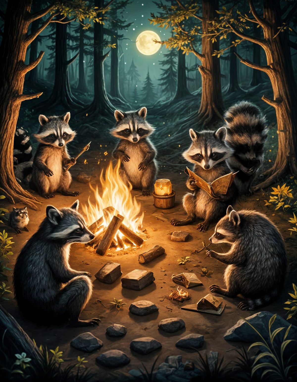 Generate your own unique images of nocturnal animals around a campfire for free. Easy and fast AI creation.