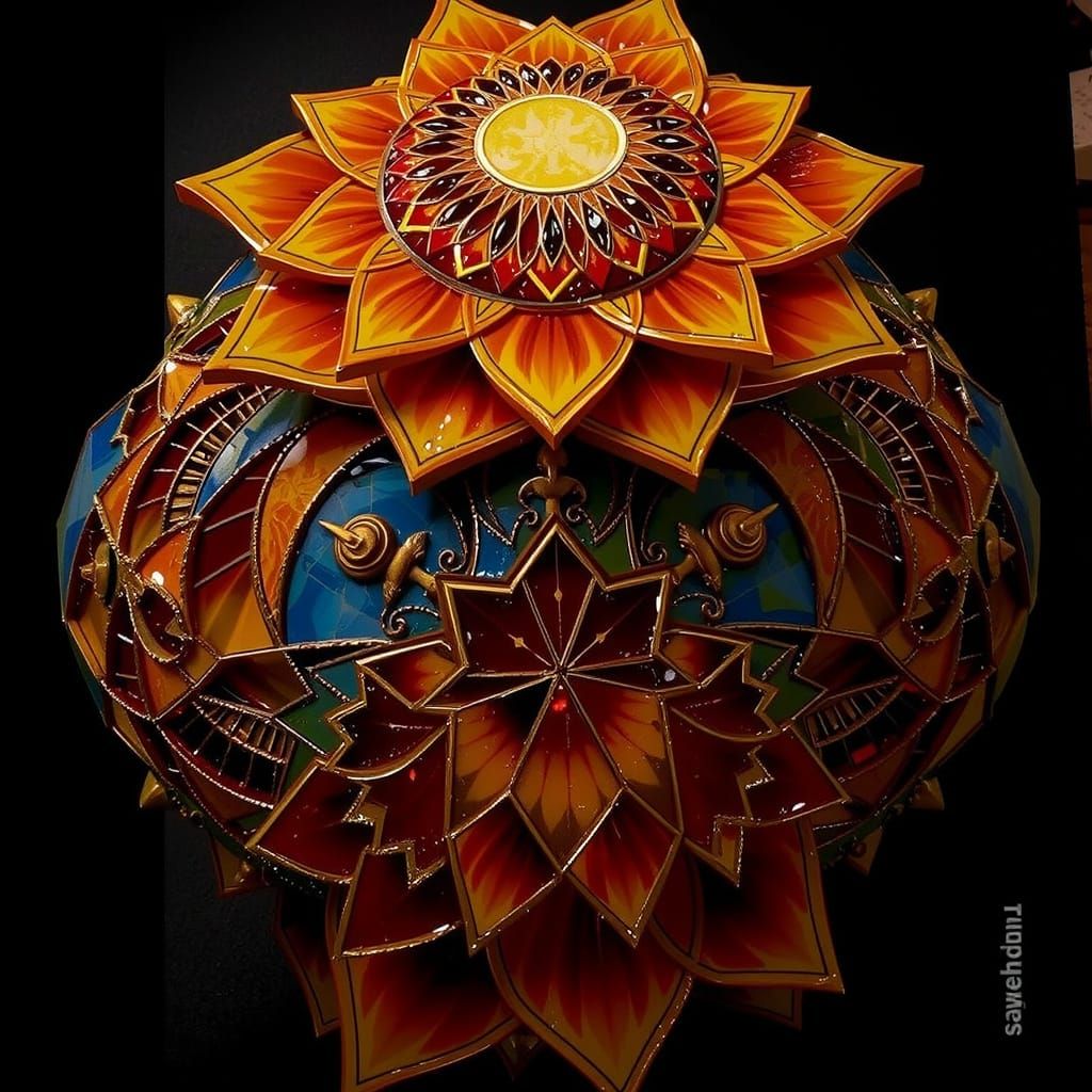 Design your own intricate mosaic patterns with vibrant gold, blue, and red tiles. Free and easy AI art generation.
