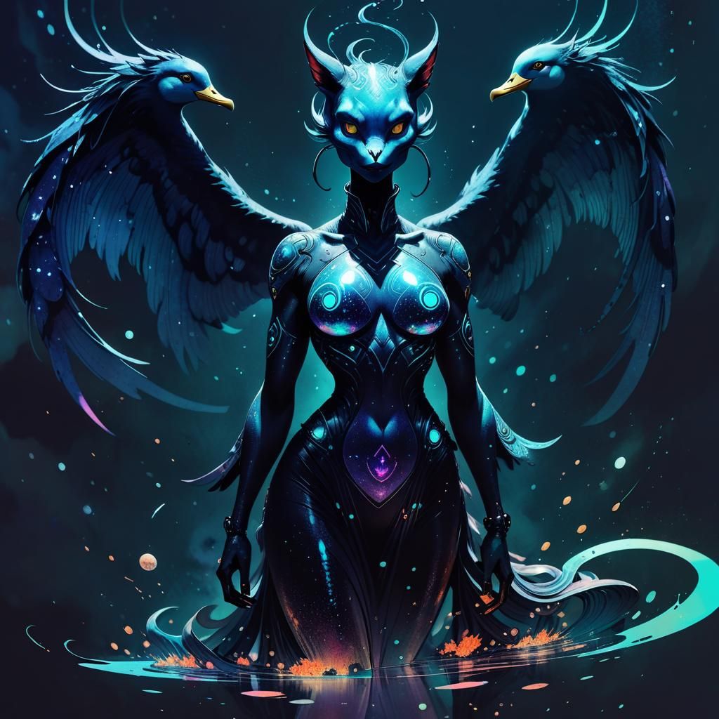 Shes amazing and interestingly beautiful! Love her cat like face and her duck wings! Great colors!