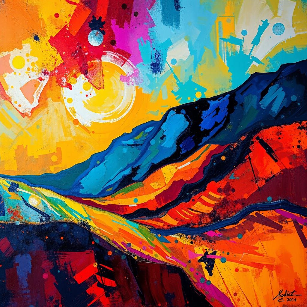 Create your own vibrant abstract landscape paintings with our free AI image generator. It's easy and fun!