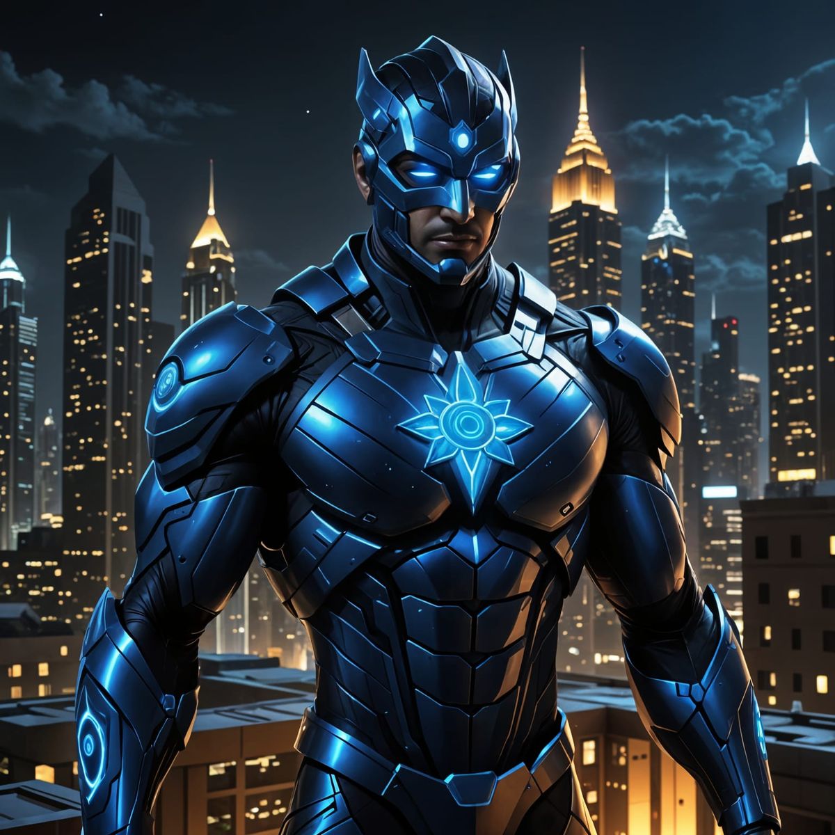 In a future Mumbai where tradition meets technology, a new protector rises. The Blue Lotus fuses cutting-edge design with ancient symbolism—his glowing emblem a beacon of intelligence, wisdom, and knowledge.