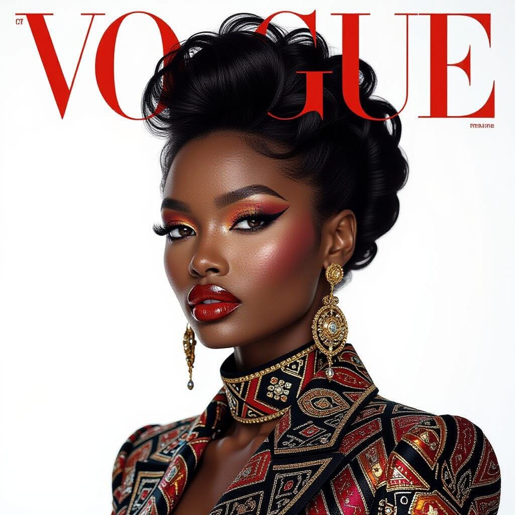 Generate your own stunning editorial fashion photos with avant-garde outfits and dramatic makeup using our free AI tool.