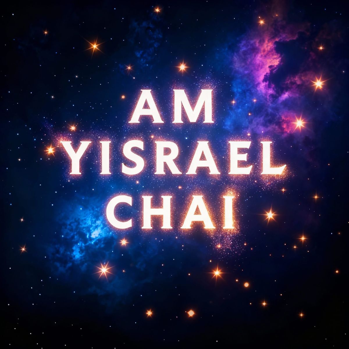 This image features the Hebrew phrase 'Am Yisrael Chai' creatively rendered with a special, unique artistic approach.