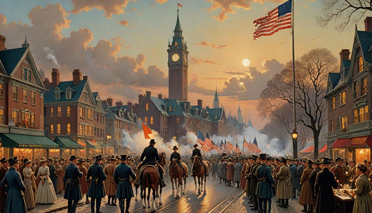 This image depicts a charming village scene, rendered with the detailed storytelling of classic illustrators. It captures a nostalgic and idyllic atmosphere.