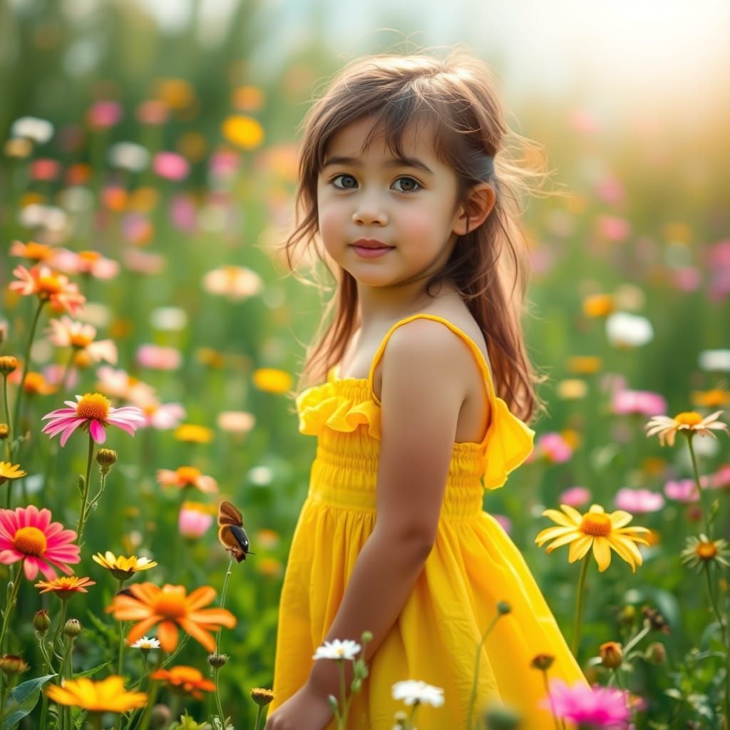 Easily create custom images of girls in beautiful flower fields with our free AI image generator