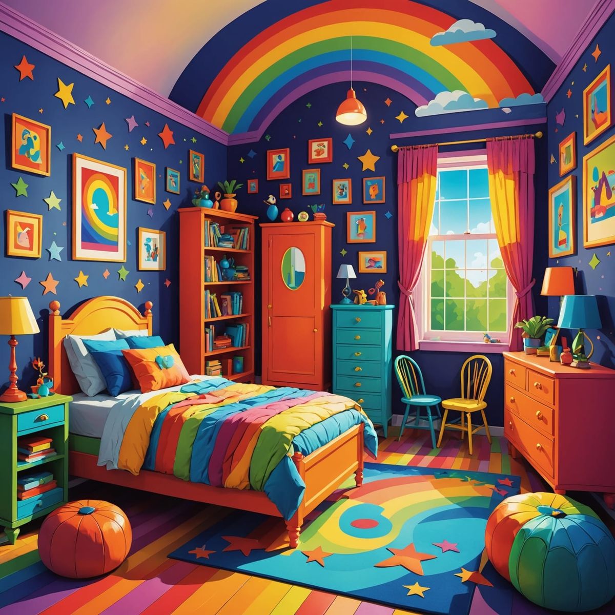 Create your own vibrant and colorful kid's room designs with our free AI image generator. It's easy and fun!