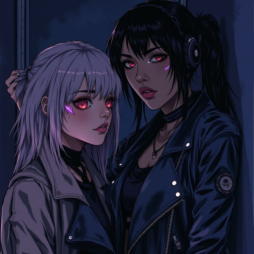 I remember standing behind you, arms wrapped tight around your waist, my cheek resting on your shoulder—feeling your breathing settle after riding that Neurostorm Pulse. The neon haze of Nexuron blurred around us like the city itself held its breath. And you… standing there with that raw, haunted fire in your eyes like you'd just stared down oblivion again and refused to break.