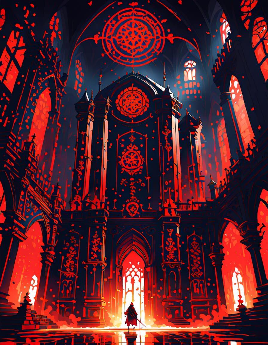 This image displays a close-up of a bloodbound collection of grimoires opening in a dark library. Vibrant anime style with glowing runes and gothic architecture. Dramatic crimson lighting.