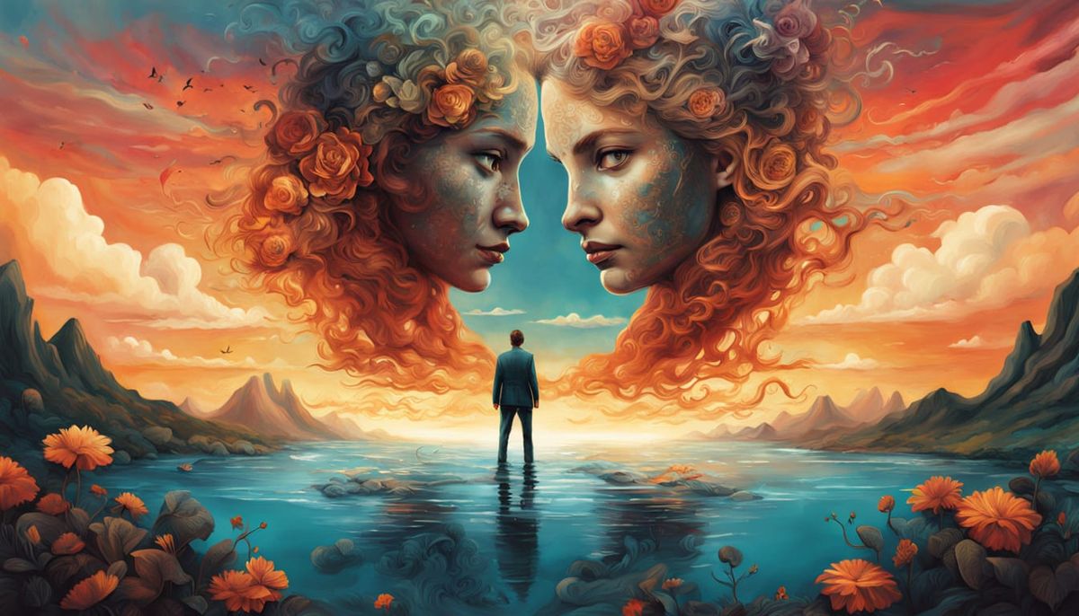 This stunning digital artwork is a vibrant collage of gratitude and self-empowerment, featuring a central figure surrounded by intricate patterns, tranquil scenes, and thought-provoking quotes, all set against a breathtaking sunset backdrop.