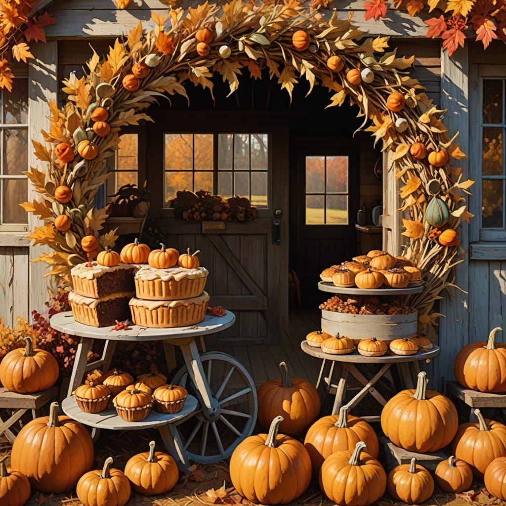 Generate unique harvest festival scenes with hayrides, pies, and wreaths. Free and easy AI image creation.