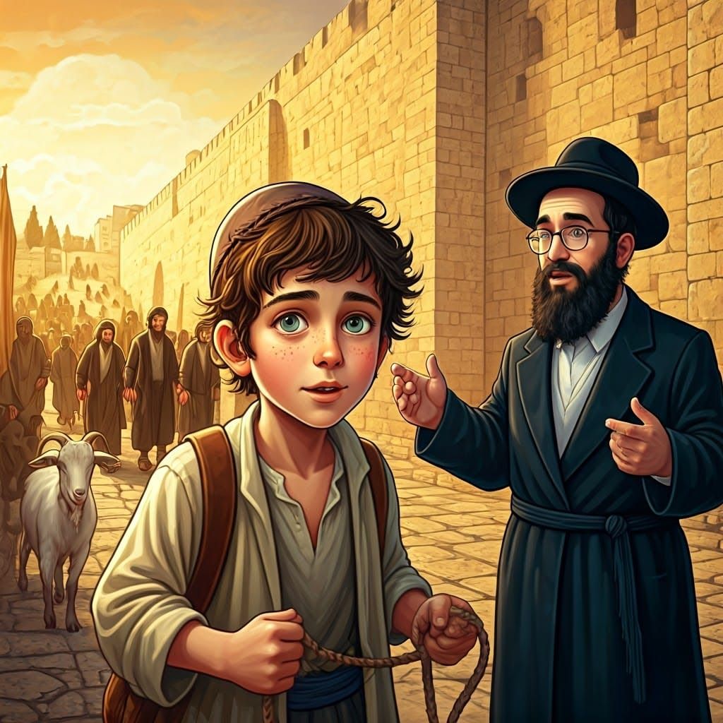 This image juxtaposes a traditional scene from ancient Jerusalem with a modern synagogue setting, highlighting the continuity of Jewish tradition and the importance of Passover in the faith