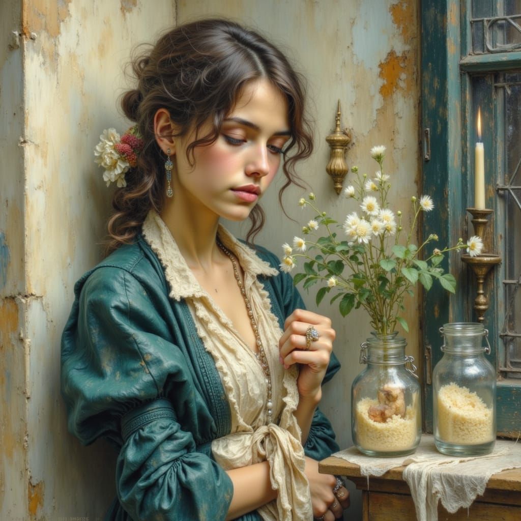 Waits at the window, wearing the face that she keeps in a jar by the door