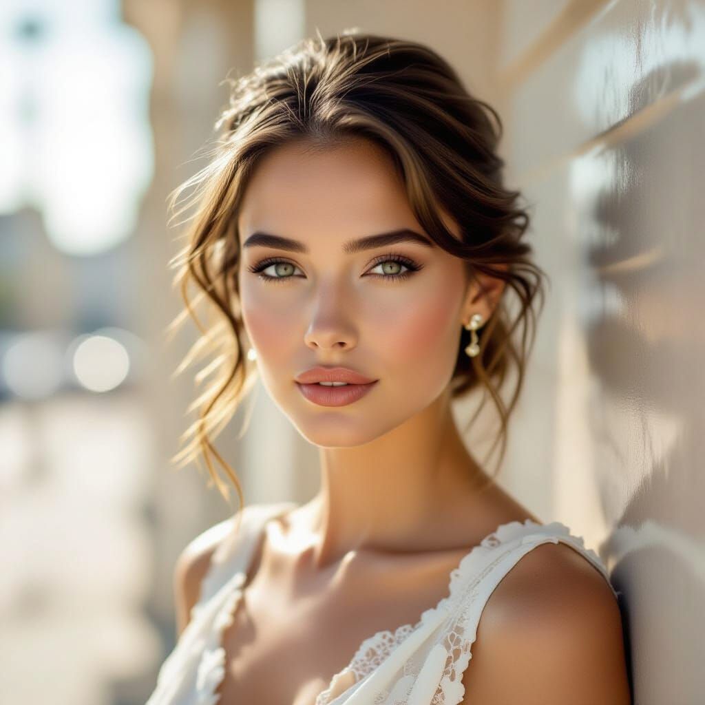 Cinematic film still capturing a radiant, privileged Uptown Girl. Her polished exterior hides a deeper desire for reality, presented with atmospheric lighting and film grain.