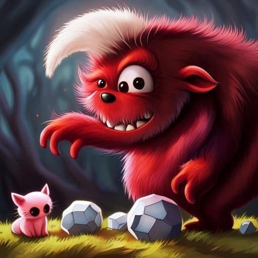 This image shows fluffy, cute creatures that resemble adorable, cuddly, demonic monster babies. The AI has generated a striking and unusual image.
