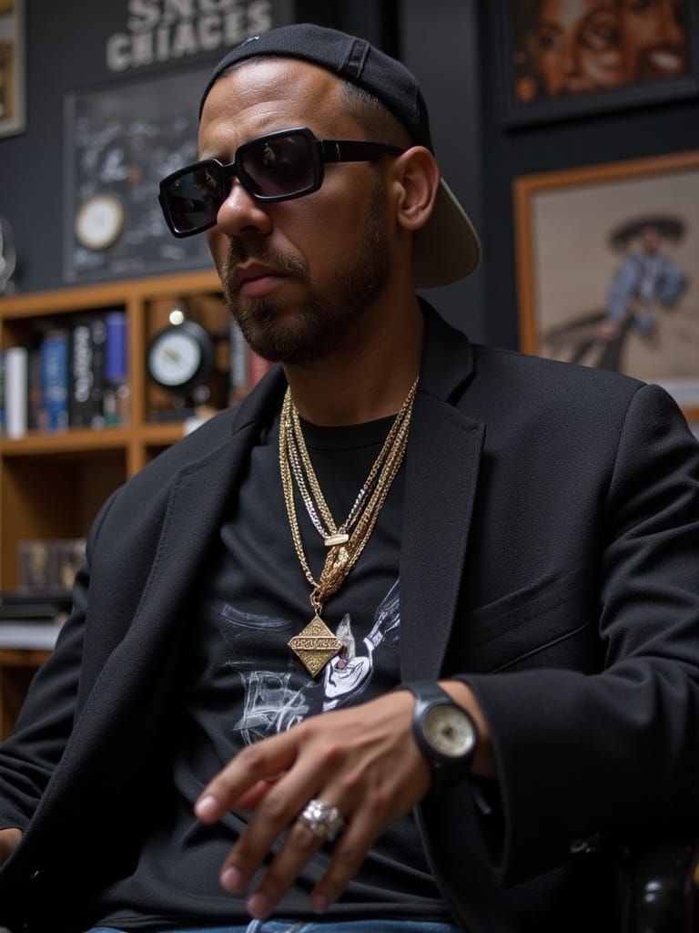 A digital portrait of a stern-looking crime boss in Chicago. This image captures a gritty, urban aesthetic reminiscent of classic gangsta-rap and crime dramas.