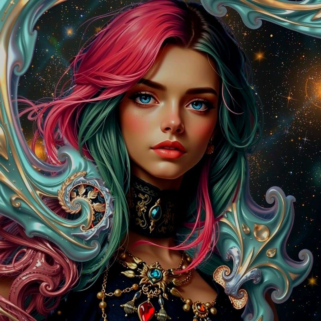 Generate your own vivid starry night scenes with swirling nautilus shapes and glowing silver forms. Free and easy AI image creation.