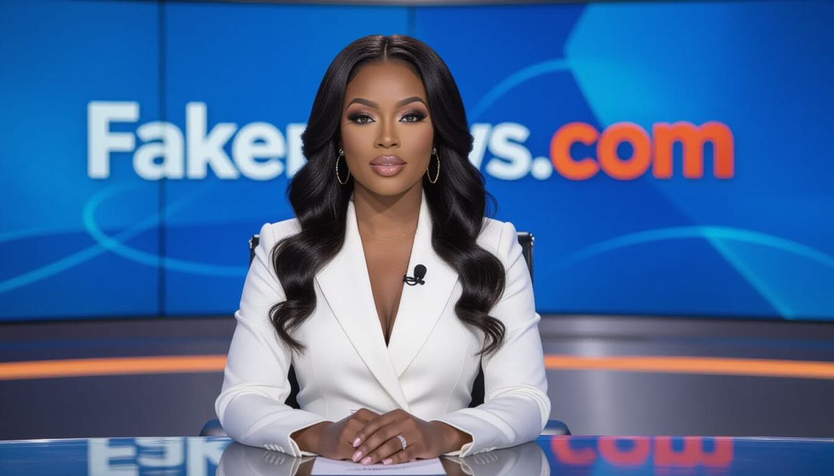 This image shows a photorealistic portrait of a confident female news anchor in a modern studio. Ultra-detailed, cinematic broadcast quality with soft lighting.