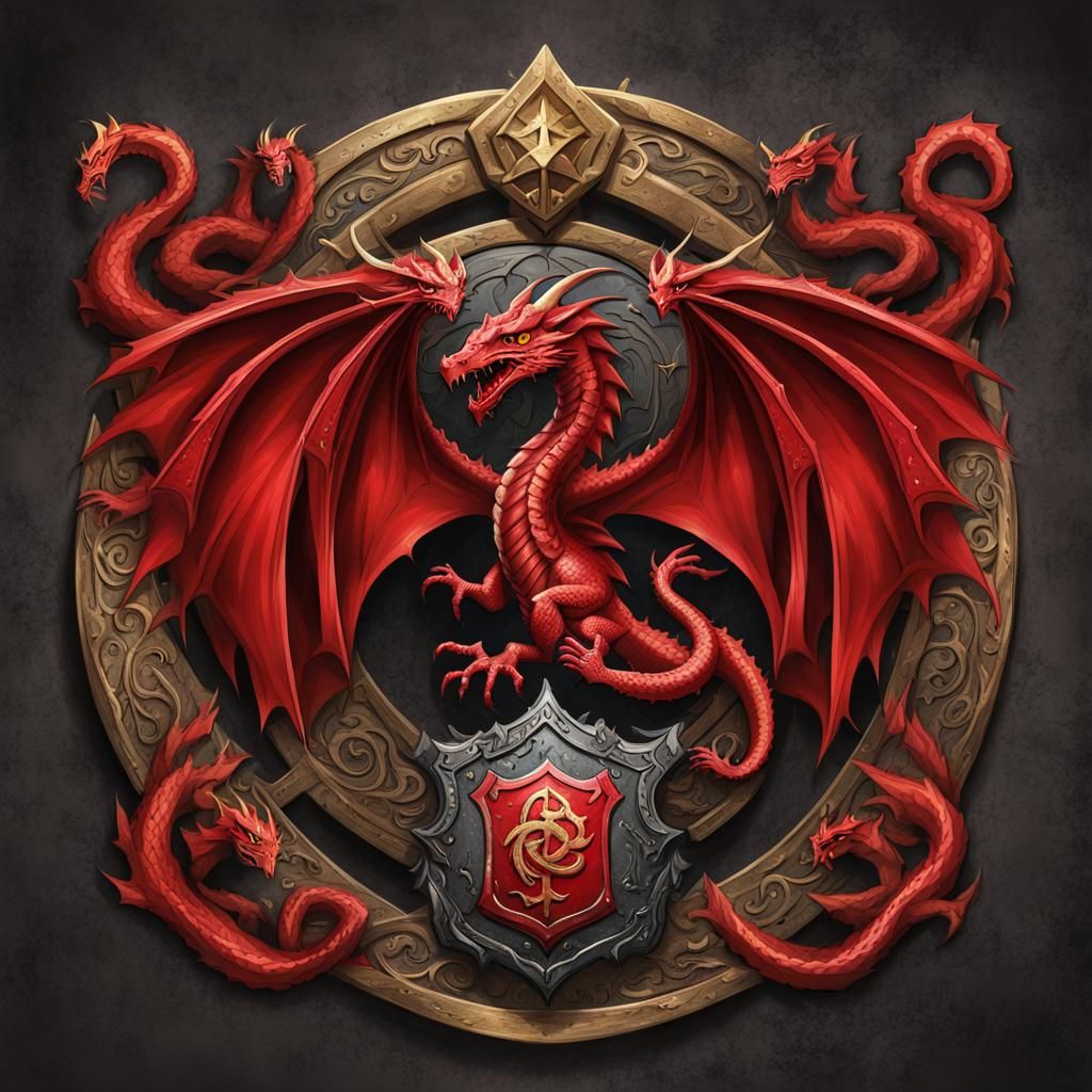 This image shows a red dragon crest, evoking a fantasy aesthetic. The design is suitable for Dungeons and Dragons campaigns and related fantasy themes.